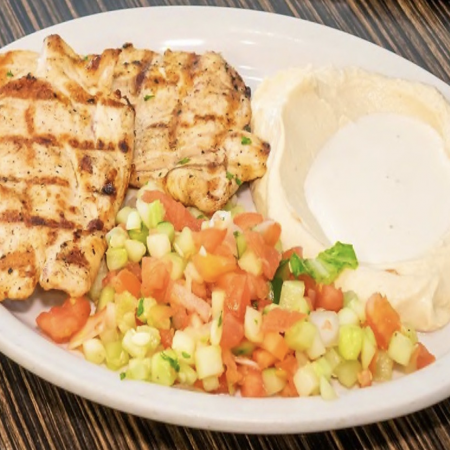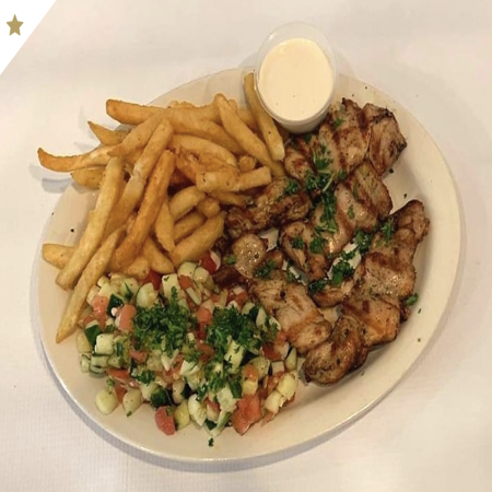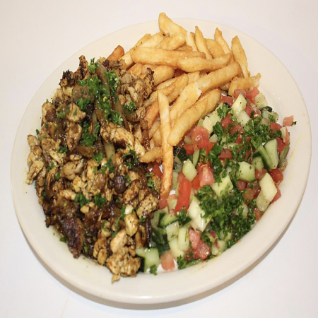 All Entrees served with your choice of two side dish: Steamed White Rice, French Fries, Couscous or Fresh Salad & 2 sides of House Salad and Pita Bread.