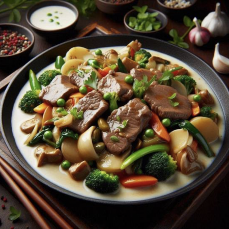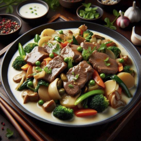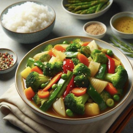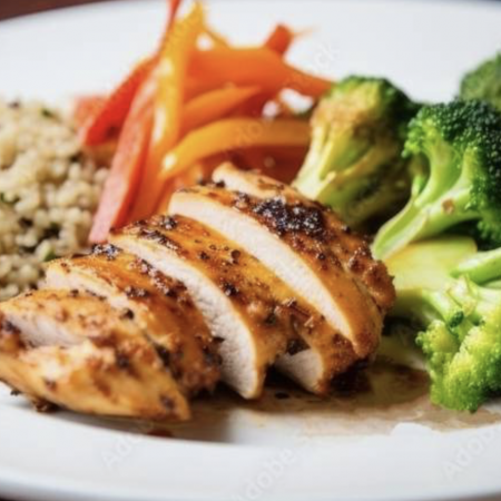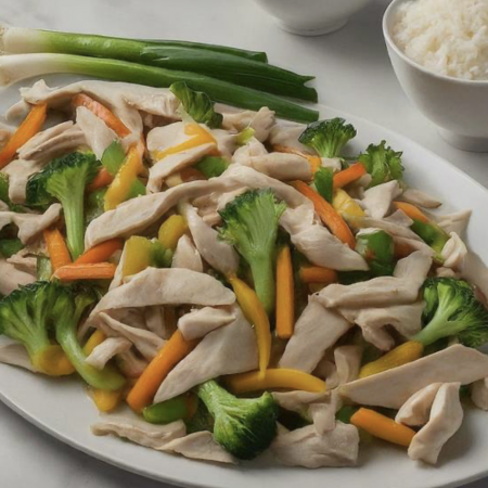 INCLUDES STEAMED VEGETABLES AND CHOICE OF FRENCH FRIES OR RICE