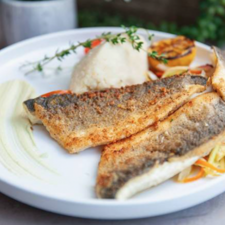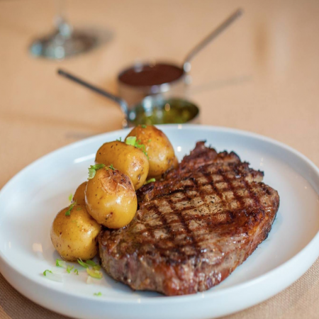 Served with a complimentary choice of: rice, potato wedges, thin cut french fries, potato purée or house salad