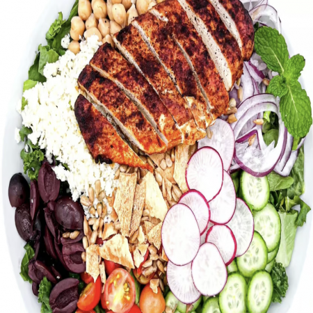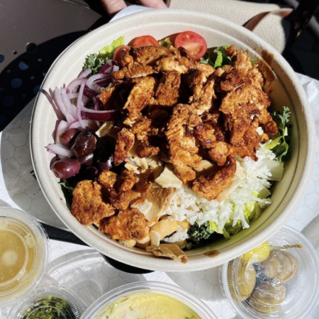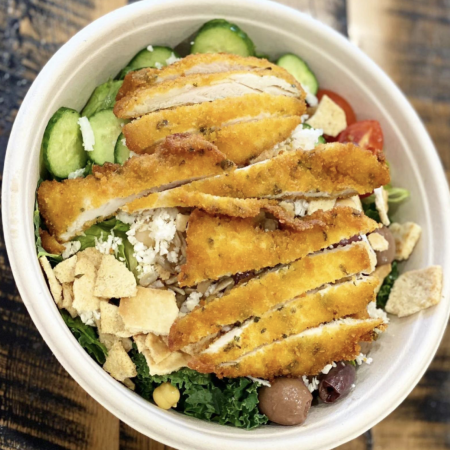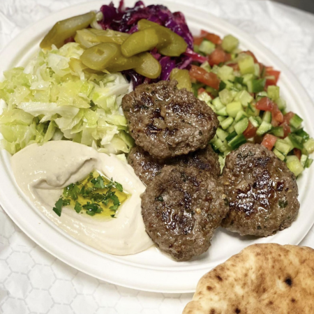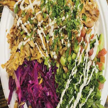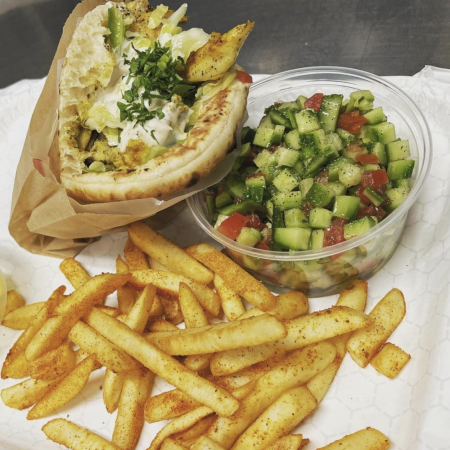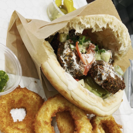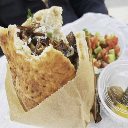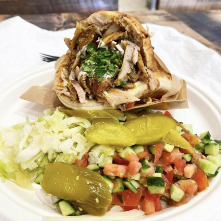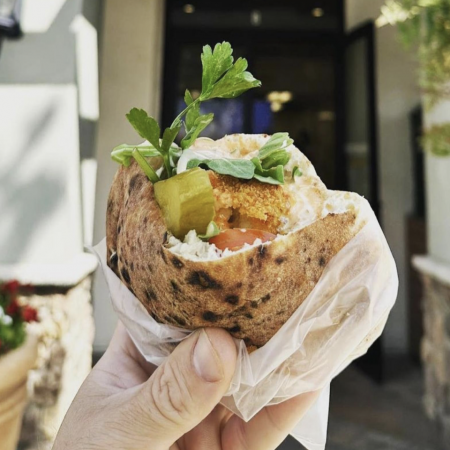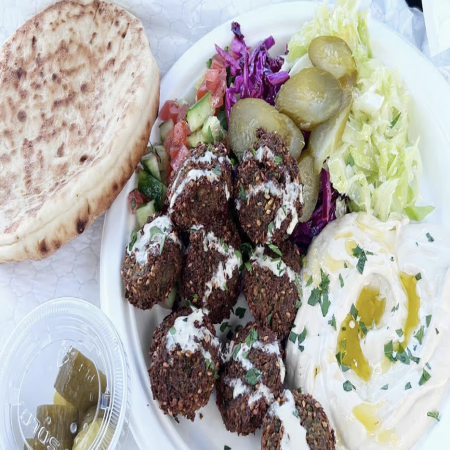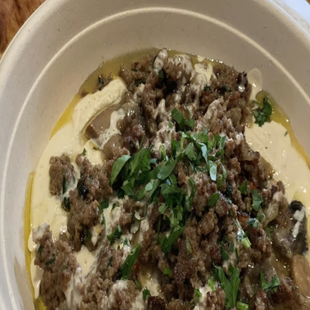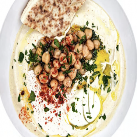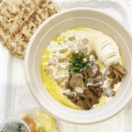 All Veggie Hummus bowls are served warm and come with a side of pita bread, spicy homemade schug sauce and house pickles