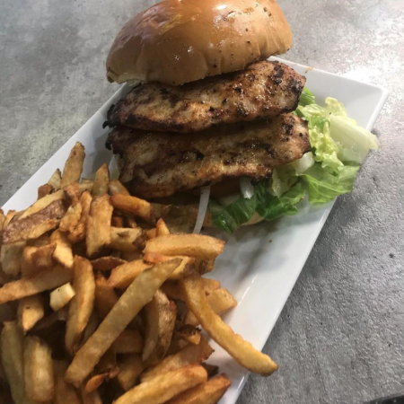 Served with Lettuce ,Tomato , Onions and your choice of French Fries