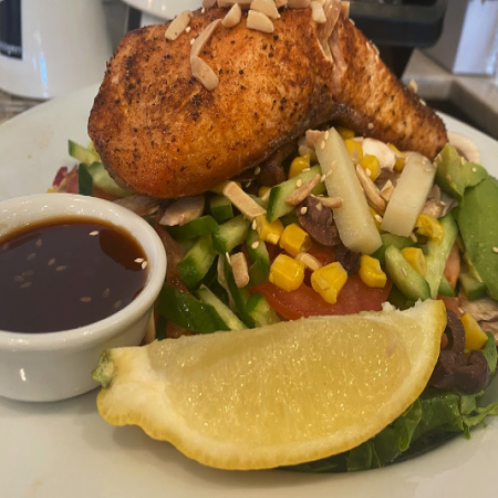 Served with house salad, hot sauce, pacific and garlic dressing.