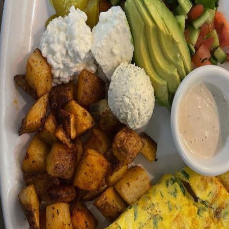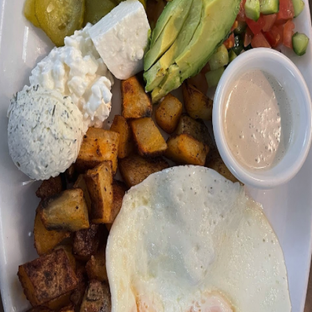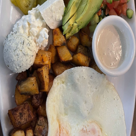 All breakfast served with your choice of whole wheat, pita, or home-made bread and freashly chopped Israeli Salad