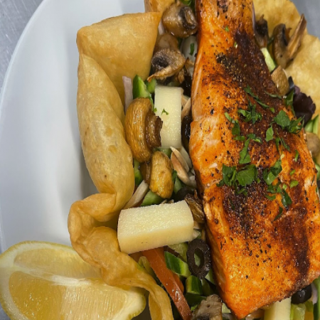 Served with house salad, pacific dressing and hot sauce.