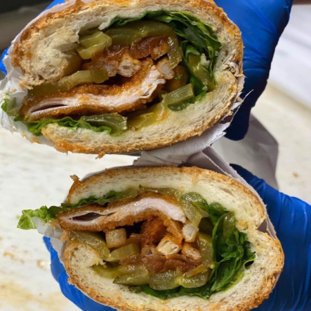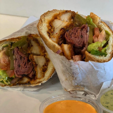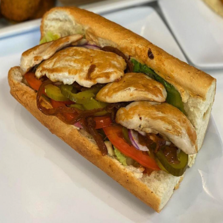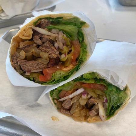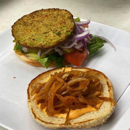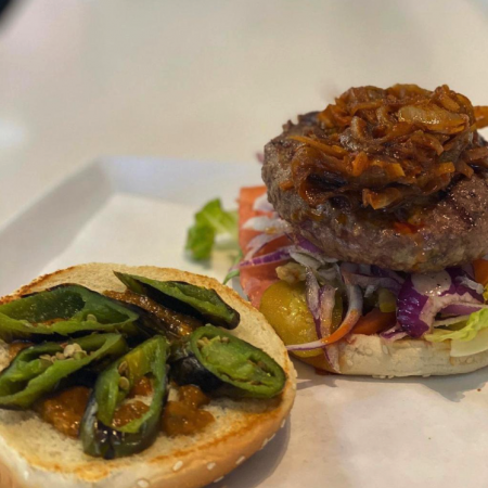 Comes with lettuce, tomatoes, pickles, onions and grilled onions