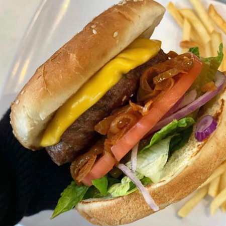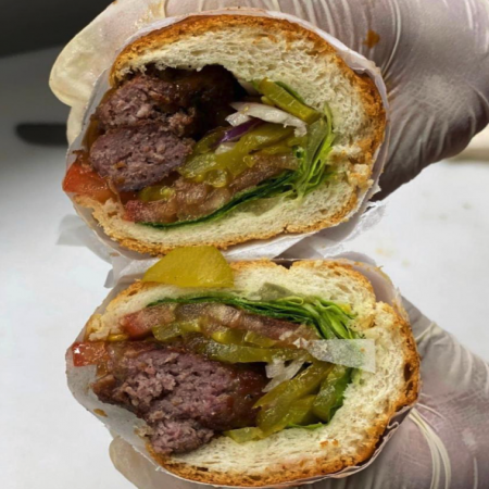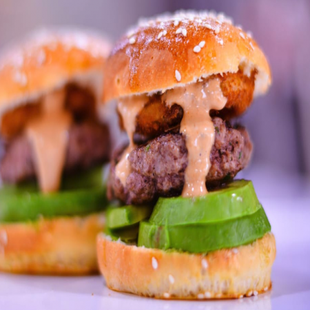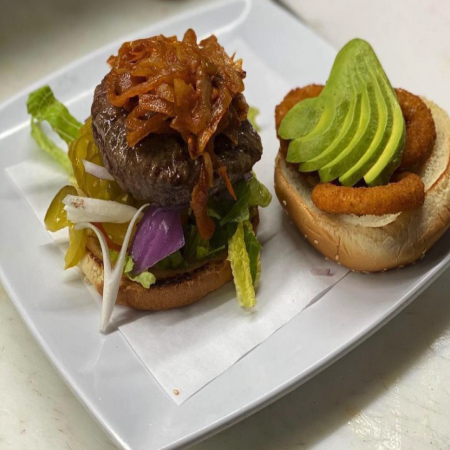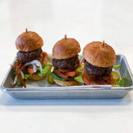 3 juicy burgers. Served with a toasted mini bun. Comes with lettuce, tomatoes, pickles, onions and grilled onions